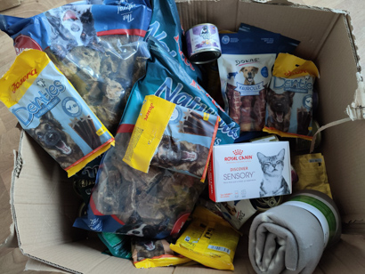 Nach der normalen Fütterung hatten wir die Hunde mit den Geschenken überrascht ;) Ganz aufgeregt warteten sie mit leuchtenden Augen auf das, was wir aus den Kartons zaubern durften :))