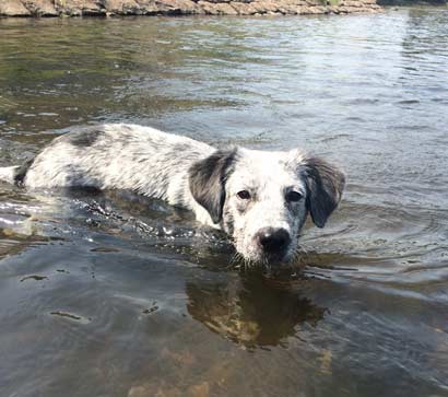 Ghost heißt nun Elvis und hat sich innerhalb weniger Tage zu einem freundlich aufgeschlossenen Hund entwickelt. Er wirkt nur noch wenig verängstigt, ist absolut stubenrein und tritt allem und jedem zunächst aufgeschlossen und neugierig gegenüber.