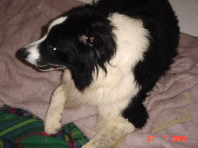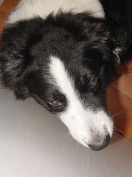 des Zwingers im Tierheim, da er mit seinen uringeschädigten