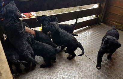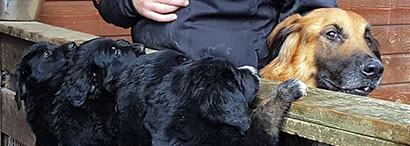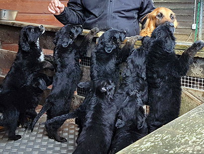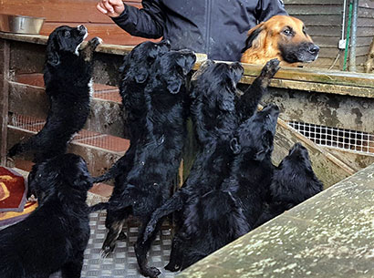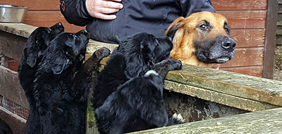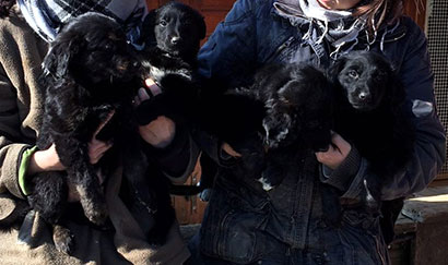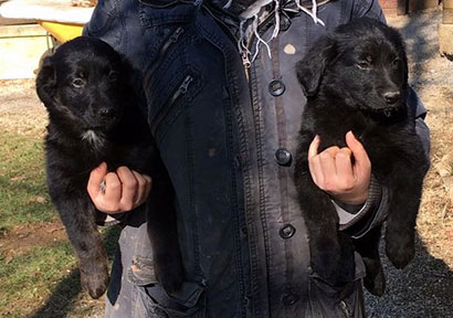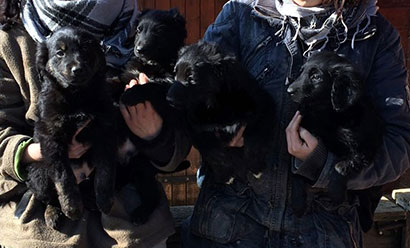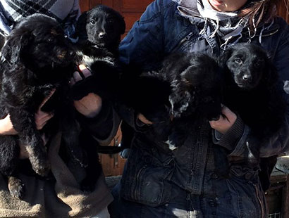 Die Welpen haben alles gut überstanden und es sind wahre Wonnenproppen geworden, die lustig umhertoben und spielen. Wir denken, dass die Hundekinder vermutlich größere Hunde werden, denn laut Aussage des Besitzers war der Golden Retriever Mix Rüde von nebenan der Vater der schwarzen Welpen (?) Die Racker suchen nun nach lieben Menschen, die mit ihnen durch Dick und Dünn gehen :)