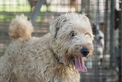 Manchmal steht er in seinem Zwinger und schaut einen traurig an, manchmal springt er gegen die Zwingertür und bellt vor lauter Kummer.