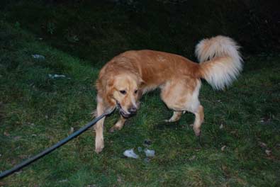 Golby/Finn ist kein Retriever, wie das Tierheim ursprunglich angenommen hatte, sondern ein Hovawart oder Hovi-Mix. (vgl. Wikipedia).