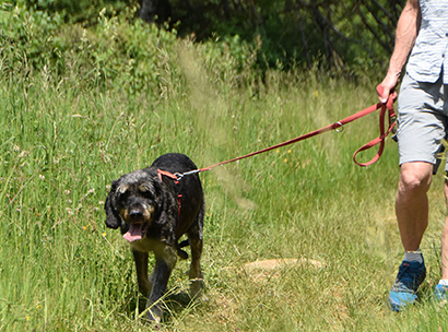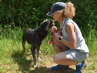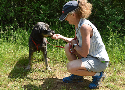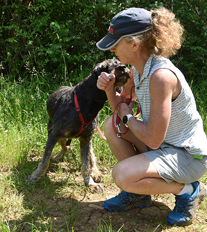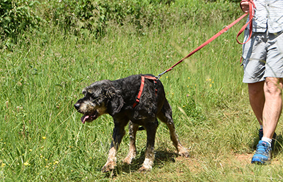 Beim Spazieren gehen zieht er schon noch an der Leine aber ab und zu kommt er auf Ruf zurück.