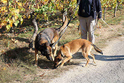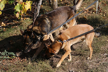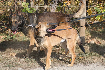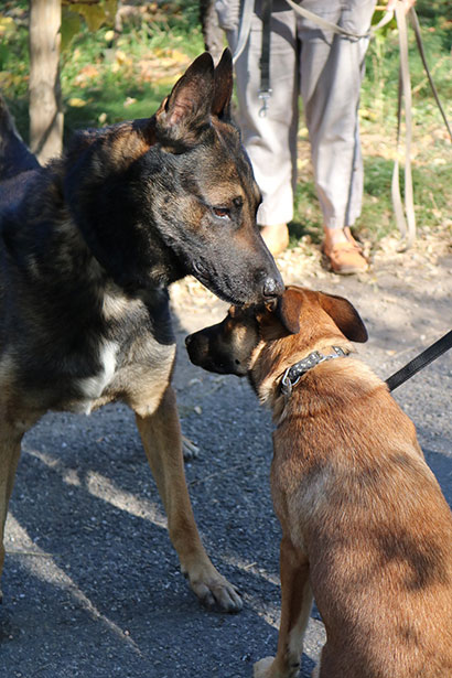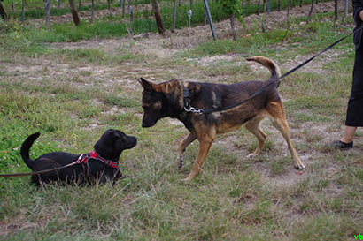 Goliath ist ein feiner Gentlemen, der sehr zart mit L`Bibi umgeht und keinerlei Interesse an den verschiedenen Gassigängern zeigt die die Hündin führen.