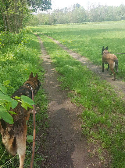 Desweiteren übt Goliath gerade mit einem weiteren Gassigeher spazieren zugehen.