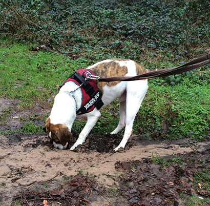 Er zeigt sich uns als sehr liebenswerter und freundlicher Geselle. Natürlich ist er im Tierheim völlig unterfordert und zieht erst mal an der Leine, aber nach einer kurzen Strecke beruhigt er sich und der Spaziergang kann vom Hundeführer und Hund sehr genossen werden.