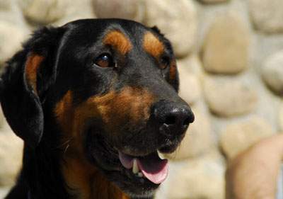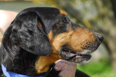 die Kopfform einem Jagdhund. Vom Wesen ist