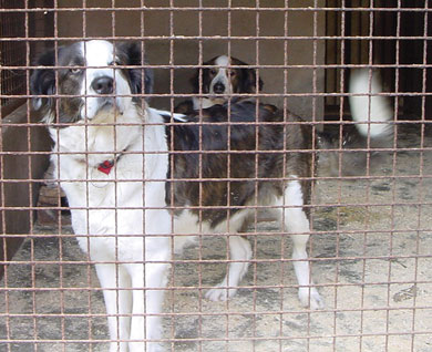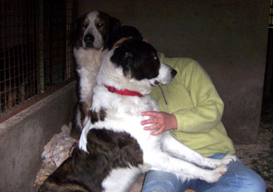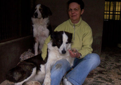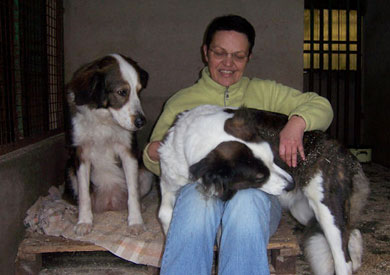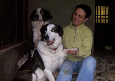 schmust mit Belle und Grace in ihrem Zwinger (April 07) |