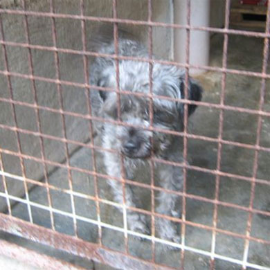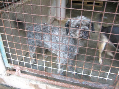 Graues lockiges Kerlchen, vermutlich Pudelmix, noch jung. Weitere Infos folgen. Wir haben ihn Grisou genannt.
