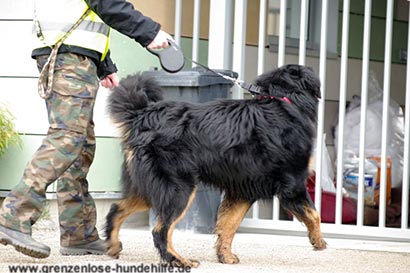 Er kennt das Kommando Sitz und wartet geduldig, wenn man ihm seinen Napf hinstellt. Wenn er rausgeht und ein Hund ihn anbellt hat das der schöne Rüde gar nicht gerne!