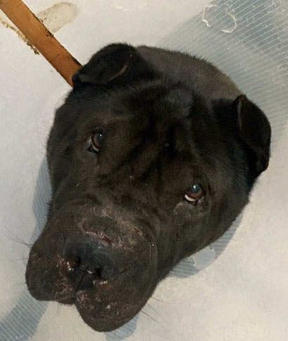 Der gerade mal 8 Jahre alte Sharpei Rüde wurde von seinem Besitzer und dessen Kindern misshandelt.