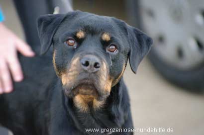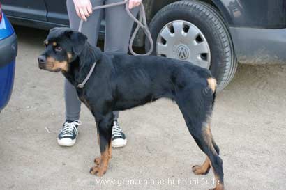 Die zierliche Rottweiler Hündin Haika hatte bisher auf einem Balkon gelebt :((