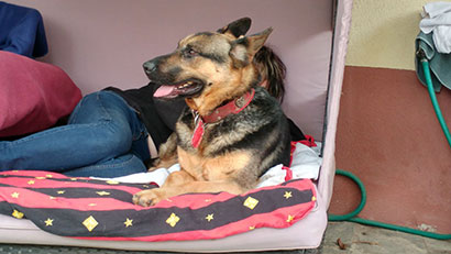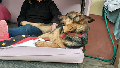 Wir hatten große Angst um die arme Hündin und sind sehr dankbar, dass sie nun in der Pension ist.