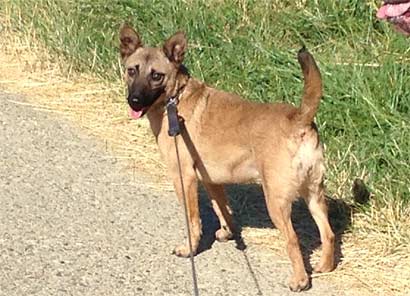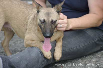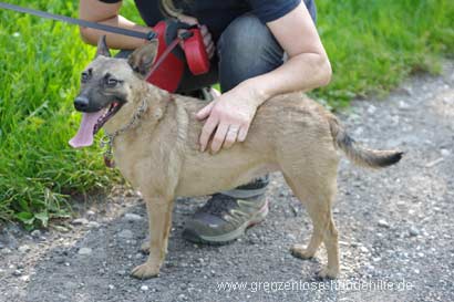 Hamy ist eine ca. dreijährige Mixhündin deren Aussehen einem Belgischen Malinois gleicht.