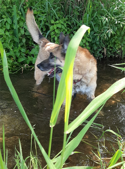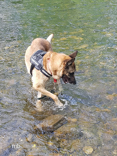 Hannibal mag die heissen Tage nicht so sehr und freut sich jedes Mal wenn er ans Wasser darf.