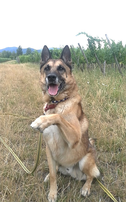 Selbst der Wechsel der Leinenmenschen war kein Problem und auch nicht, wie man sieht, das Anfassen und Fellbüschelzupfen durch eine, für Hannibal, fremde Person!