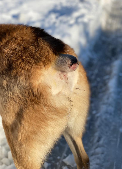 Zuletzt hatte sich der Rüde im Zwinger seine Rute so schwer verletzt, dass der Tierarzt, aus Gründen der Heilung, diese komplett kürzen musste.