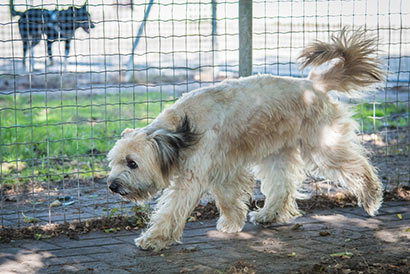 Einige Hunde kamen aus dem Tierheim und liefen an uns vorbei. Happy blieb ganz ruhig sitzen und hat den Artgenossen nachgeschaut.