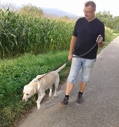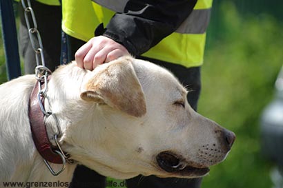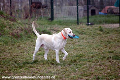 Nachdem Labrador Rüde Harkos seine Verhaltensauffälligkeiten leider auch im Tierheim beibehält und draußen im Umgang mit uns Menschen ein typischer Vertreter seiner Rasse ist - freundlich und verspielt - gestaltet sich allerdings der Weg zurück oder aus dem Zwinger nicht einfach, so daß inzwischen versierte Gassigänger oder Pfleger dabei helfen müssen :(