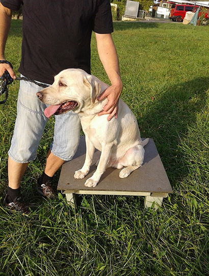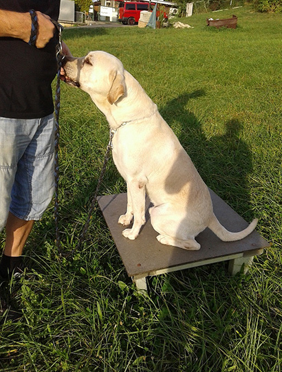 Der Labrador Rüde Harkos befindet sich jetzt in der Pension. Der Trainer wird sich nun die Verhaltensweisen des Rüden ansehen und dann entsprechend trainieren.