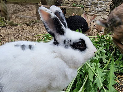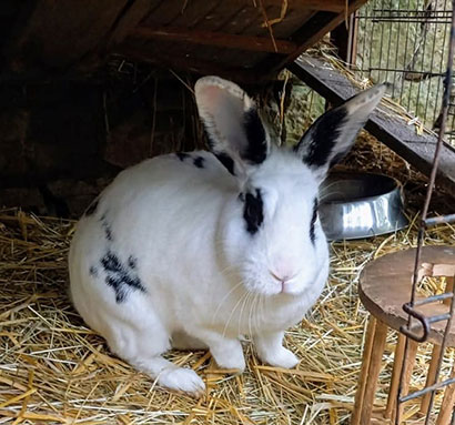 Er lebt bei uns im Verbund mit unseren anderen Häschen in Aussenhaltung, mit Zugang zum Stall.