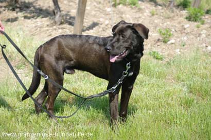 Hatchi ist ein schlanker freundlicher Labradormix Rüde. Der Rüde lebte bei Obdachlosen und bekam pro Tag nur eine Dose Futter zu fressen :(