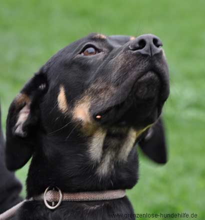 Der junge Rüde ist stubenrein und kommt gut mit Artgenossen, Katzen und Kindern aus.