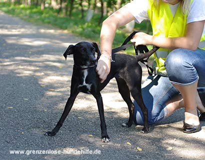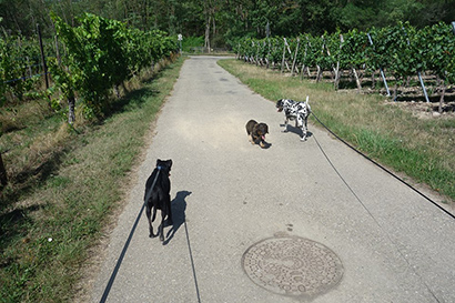 Heidi hat es immer eilig auf ihren langen, dünnen, Beinchen aus dem TH raus zu kommen. Flotten Schrittes geht es ab in die Reben und da wird dann viel geschnuppert.