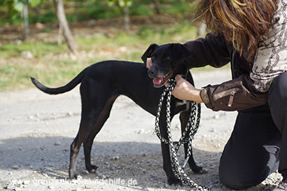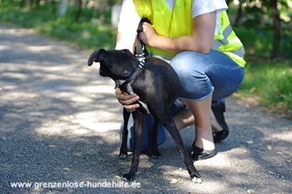 In ihrem neuen Zuhause möchte sie ihre Menschen für sich alleine haben, jedoch akzeptiert sie andere Hunde bei den Spaziergängen.