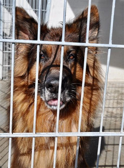 Helios hat die nasskalte und stürmische Wetterlage und die nächtlichen Minusgrade in den letzten Tagen zugesetzt und die offenen Zwinger im Tierheim bieten dem Senior keinerlei Schutz vor der Kälte.