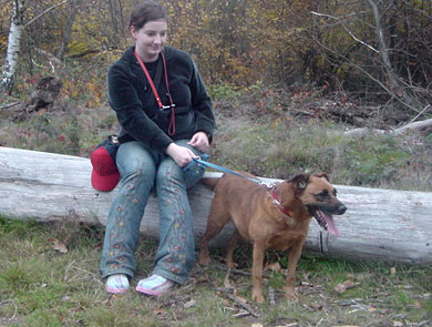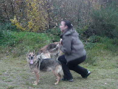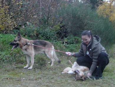 schön manierlich an der Leine, hat aber evtl. Jagdtrieb,