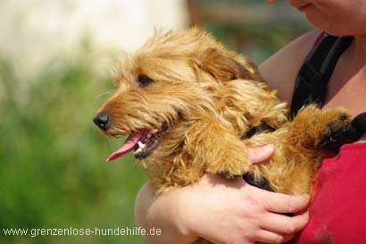 Hetty, eine kleine Mischlingshündin. Geboren wurde sie 2012.