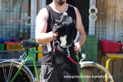 Dannach zeigte er, welch lieber Kerl er ist: sehr verschmust, so anhänglich, so lieb und total auf seinen Gassigänger(in) bezogen. Kaum hörte er seinen Namen, so kam er im vollem Tempo angelaufen um sich ordentlich durchknuddeln zu lassen - er konnte einfach nie genug kriegen. Wahrscheinlich hat er in seinem bisherigem Leben nicht viele Streichelheiten genossen. Seine Augen waren voller Dankbarkeit.
