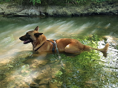 Im Sommer waren wir oft am Flußrand mit ihm und er genoss es, sich im seichten Wasser hinzulegen und eine Runde vor sich hinzudösen :)