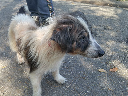 Der Besitzer wurde nicht aufgefunden. Hollys Fell ist übersät mit Parasiten, ihre Augen waren verklebt und sie war bis auf die Knochen abgemagert :((