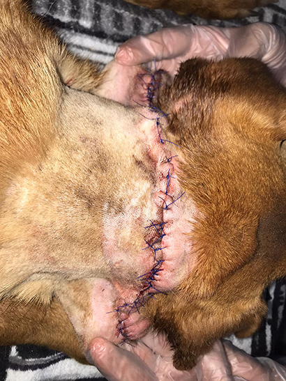 Hope wurde in eine Tierklinik in Zaragoza gefahren und direkt in einer aufwendigen Notoperation von ihrer Kette befreit.