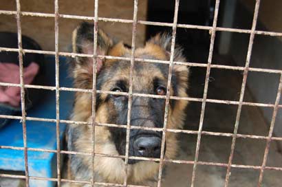 Hier auch ein erster Gassibericht: In der hintersten Ecke eines Zwingers, sass ein wunderschöner, junger Deutscher Schäfer. Sein Name ist Horacio. Als ich mich näherte begrüsste er mich mit einem leisen Krrrrrr. Aber nichts für Ungut, so schnell lasse ich mich nicht beeindrucken. Ich betrat den Zwinger, er sass immer noch verängstigt in seiner Ecke, liess sich aber problemlos anleinen und schon ging es munter aus dem Tierheim. Draussen trabte er fröhlich voran, ein wenig unsicher bellte er einen Jeden an, den wir kreuzten, ob Hund oder Mensch, aber das verging ihm bald.