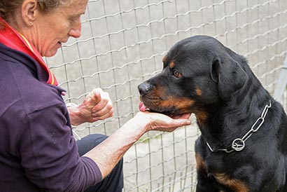 Der hübsche freundliche Rottweiler Rüde Hugo kam als Pensionsgast zu uns ins Tierheim weil sein Besitzer erkrankte.