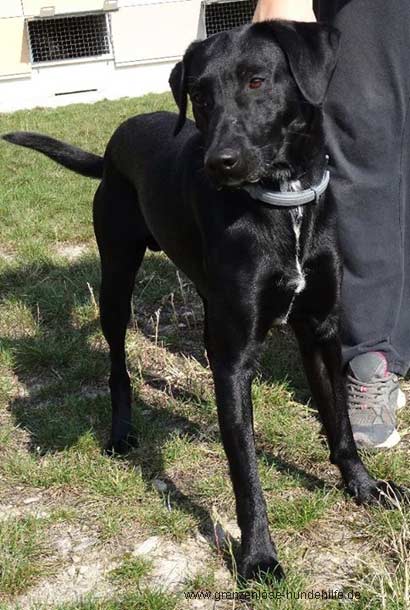 Der schwarze Labrador Mix Rüde Hutch wurde im Tierheim abgegeben, da er Sachen zerstört und wohl gerne auf eigene Faust losgezogen ist.
