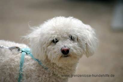 Hyona ist eine sehr niedliche und gut gepflegte weisse Bichon frise Hündin.