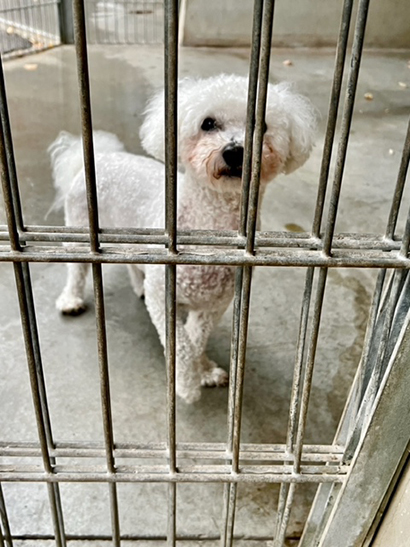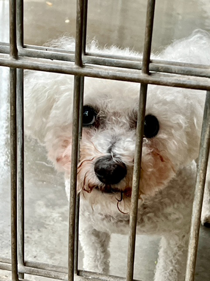 Statt im warmen Wohnzimmer im Körbchen, sitzt Hyouk jetzt im zugigen Zwinger und kommt mit den Gassigehern maximal einmal am Tag kurz raus.