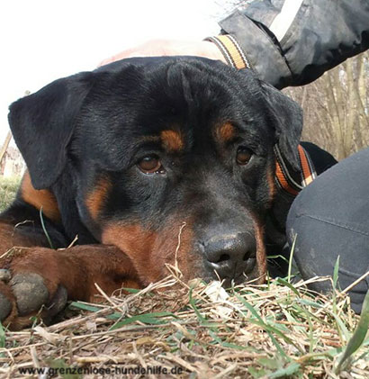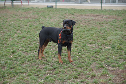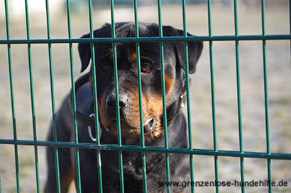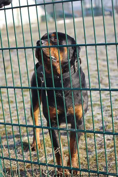 Rottweiler Rüde Icare musste ins Tierheim, da er nicht verträglich mit seinen Artgenossen ist.