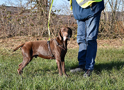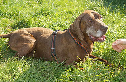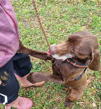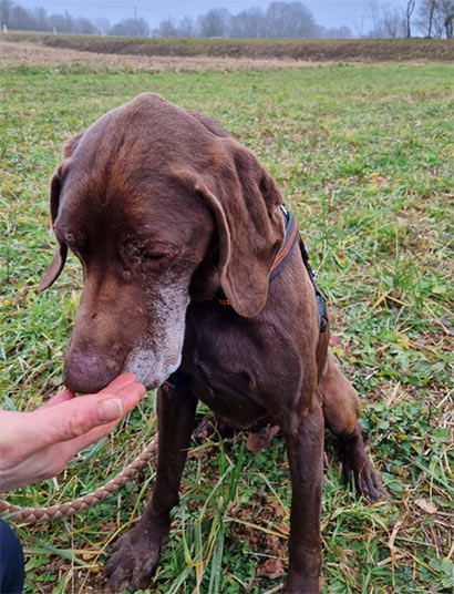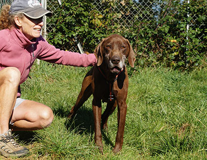 Der 8jährige Braque-Mix Icare hatte riesiges Glück. Ein Gassigänger aus dem Tierheim hatte Icare, der an einem Baum angebunden war, im Wald bemerkt.