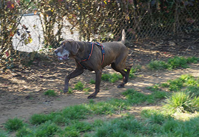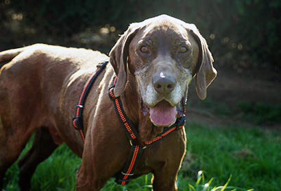 Der Große mit dem grauen Schnäuzchen hat ziemliche Kraft und ist für sein Alter noch sehr fit.