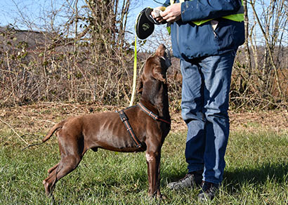 Beim Spazieren gehen hat der liebe Hundemann gerne die Nase am Boden. Erschnüffelt er etwas interessantes, kann er sich dann schon mal in die Leine legen.