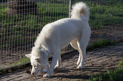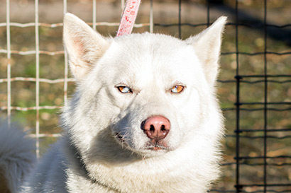 Ein wunderschöner weisser Siberian Husky namens Ice.