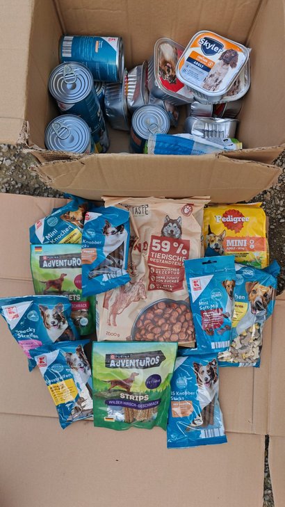 Lieben Dank an Familie Tretter und Familie Sonntag. Sie haben für die Hunde ein tolles Fresspaket gesendet.💖