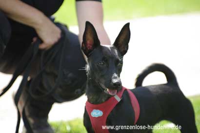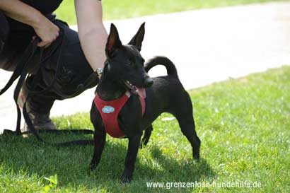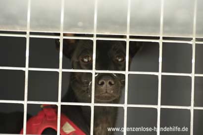 Die kleine, schwarze, Jack Russel Mixhündin Indi teilt das Schicksal vieler Ihrer Rassekollegen.
