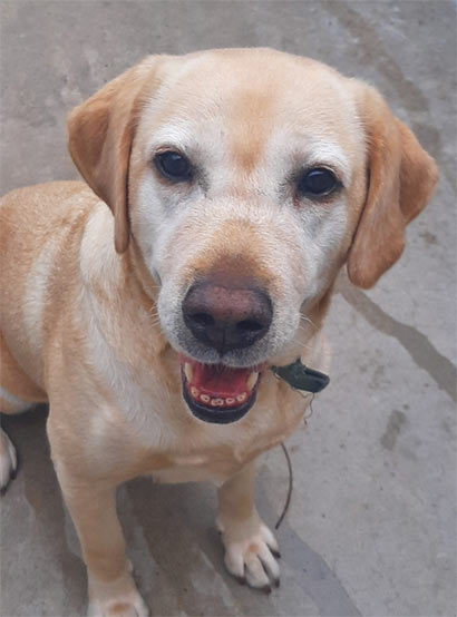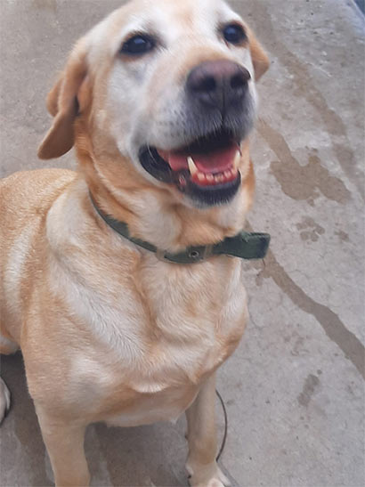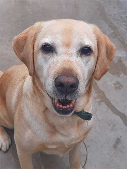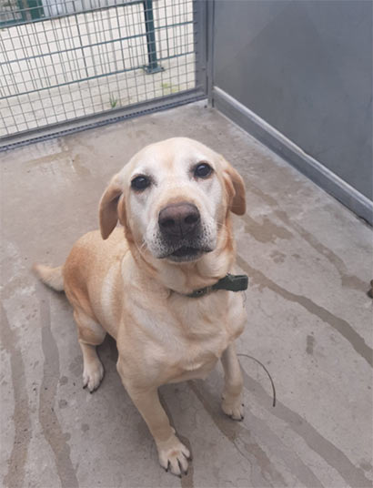Die helle 8 jähr. Labradorhündin Iris wurde via Internet gekauft und schnell stellte sich heraus, dass die agile Iris für die ca. 80 jährigen Besitzer nicht der richtige Hund war.