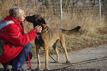 Als wir kurz mit Iron Gassi waren, war es ihm wichtig mit seiner Gassigängerin zu schmusen und legte sich dafür ohne Scheu auf den Rücken und liess sich gerne den Bauch kraulen.